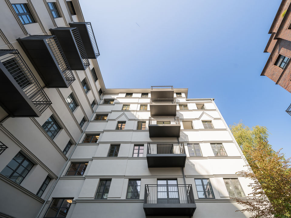 Moderne Wohnungen mit hohem Komfort und ausgeprägter Detailverliebtheit dienen als einzigartiger Rückzugsort. Unvergleichbare Penthouses mit Rooftop-Terrassen veredeln das Gebäude und bieten einen einzigartigen Blick über den Ludwigkirchplatz auf die Stadt.